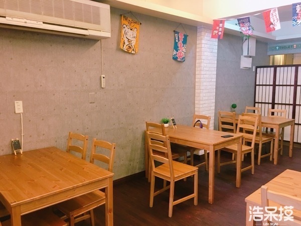 統一都是木桌、木椅,牆邊有文化石裝潢